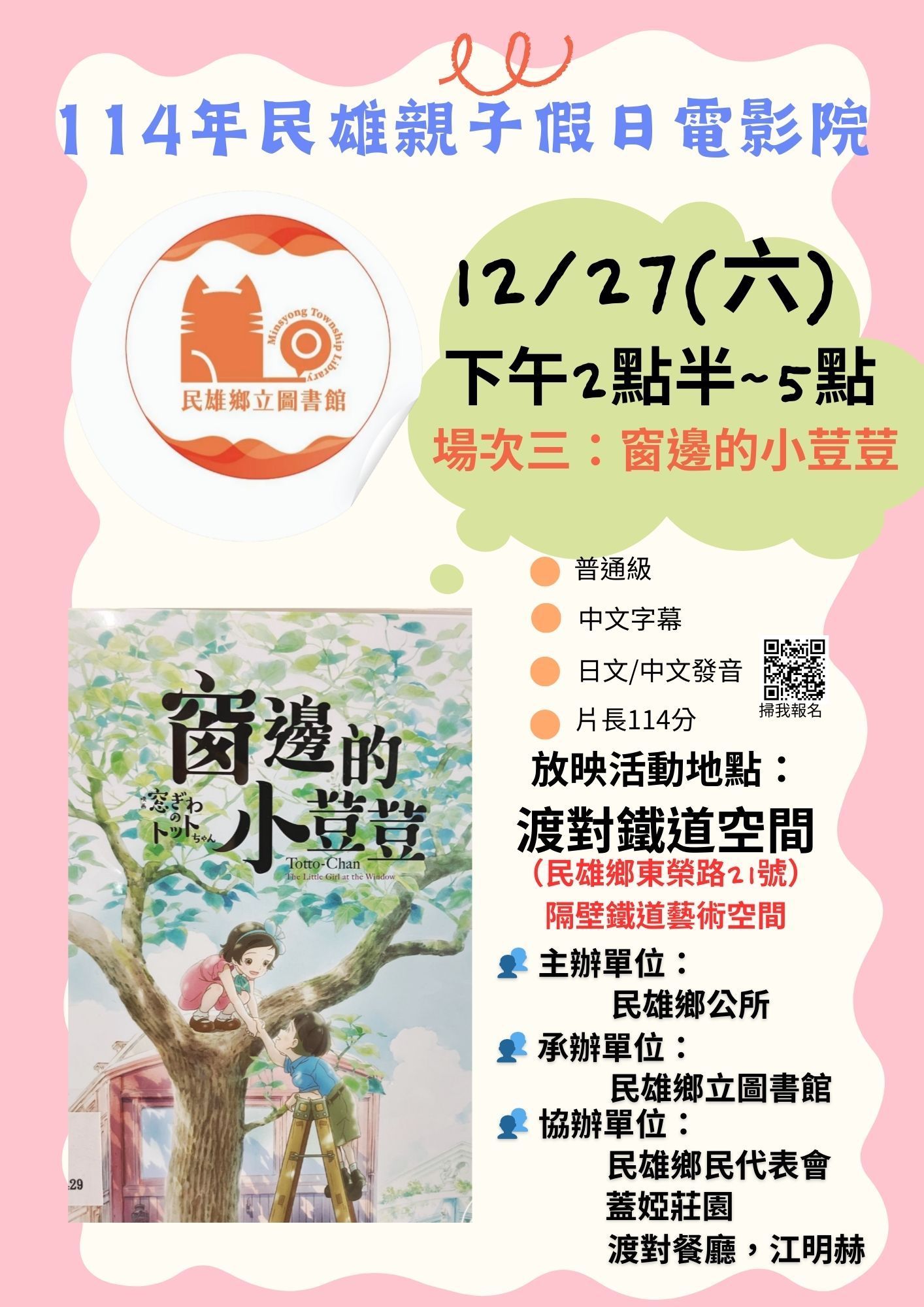 12/27(六)場次三:窗邊的小荳荳・下午2:30~5:00
